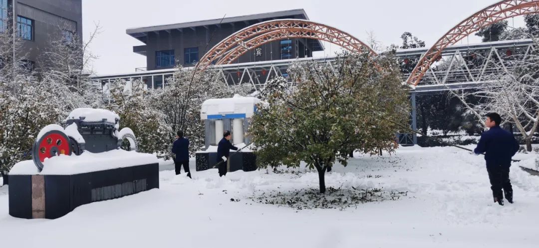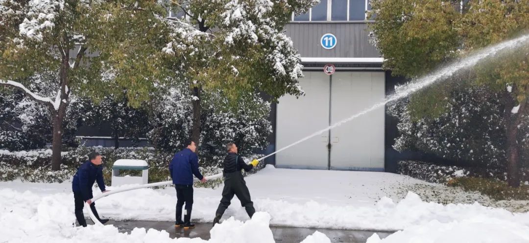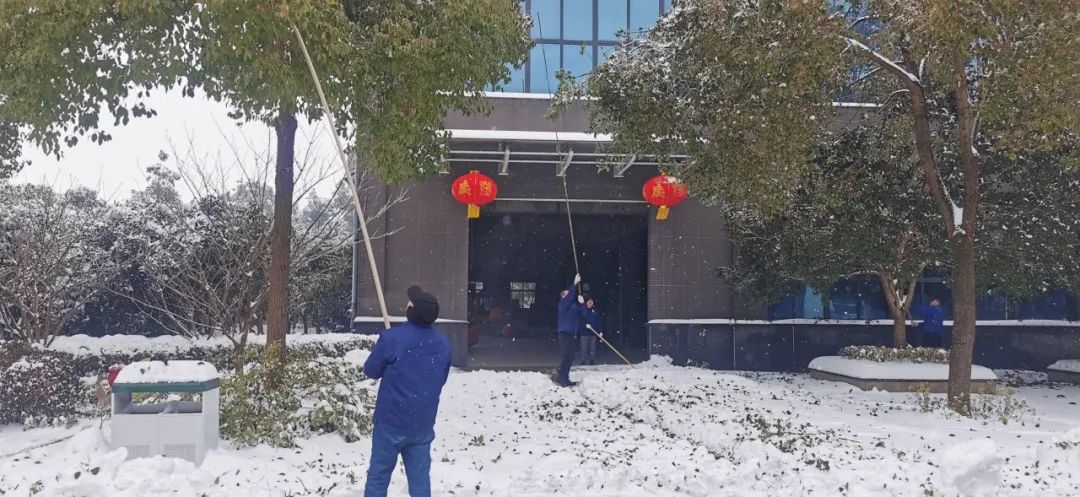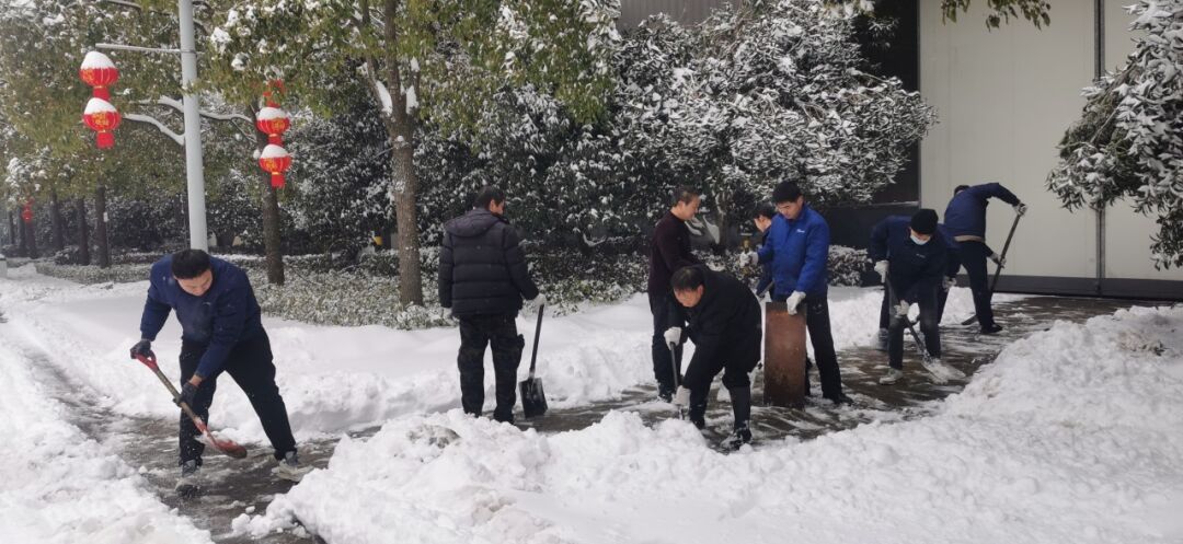 2月4日清晨,公司董事長(zhǎng)沈方勇率先趕到公司,組織各批先期到達(dá)公司的干部員工,帶上鐵鍬和竹竿,清除路面和樹木積雪,以保證員工進(jìn)出的安全。