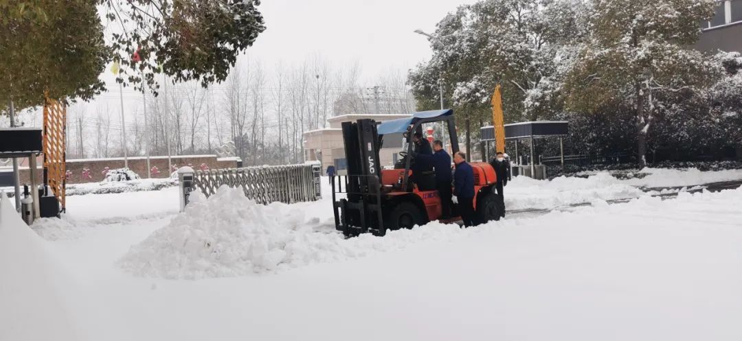 除雪工作不松勁,生產(chǎn)任務(wù)更不停歇。大量車間人員按時(shí)上崗,并派出多輛鏟車加快清理進(jìn)度。