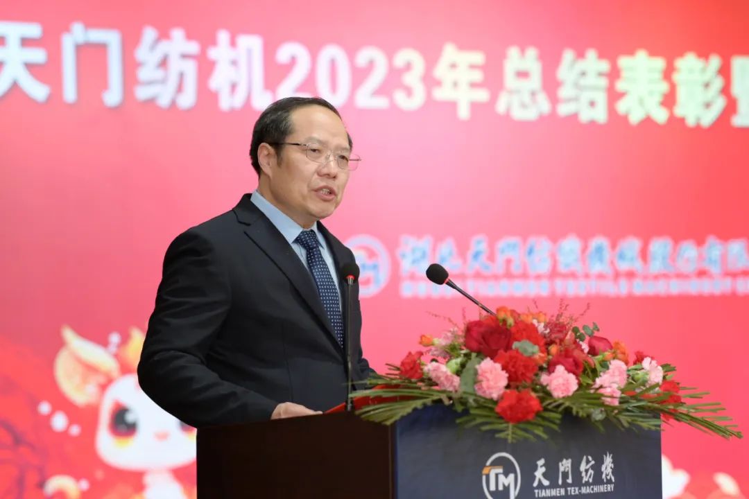 公司總經(jīng)理焦倫進作工作報告。他說,2023年,天門紡機堅持守正創(chuàng)新,扎實推進高質(zhì)量發(fā)展,穩(wěn)中求進,取得佳績。全年銷售額、利潤、入庫稅金保持最好水平,發(fā)展態(tài)勢良好。具體表現(xiàn)為:產(chǎn)品研發(fā)再奏凱歌,新一代產(chǎn)品競相亮相;生產(chǎn)制造再立新功,圓滿完生產(chǎn)任務(wù);市場營銷再顯身手,產(chǎn)品市場占有率穩(wěn)中有升;技術(shù)改造再現(xiàn)驚喜,“智慧工廠”項目和信息化建設(shè)有序?qū)嵤蝗瞬殴ぷ髟匍_新局,梯隊建設(shè)初具雛形;項目申報再創(chuàng)佳績,榮譽和效益實現(xiàn)雙豐收;基礎(chǔ)管理再擔(dān)重任,企業(yè)基石得到夯實;文化建設(shè)再展風(fēng)采,公司凝聚力進一步提升。新的一年,天門紡機將以“五個轉(zhuǎn)型”發(fā)展戰(zhàn)略為引領(lǐng),加快產(chǎn)品改進和產(chǎn)品開發(fā),穩(wěn)步推進技術(shù)改造和生產(chǎn)經(jīng)營模式轉(zhuǎn)型,繼續(xù)拓展國際國內(nèi)市場,凝心聚力,再創(chuàng)佳績。