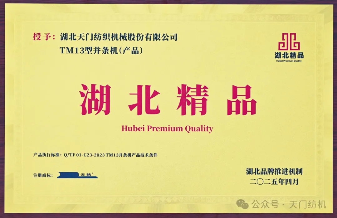 “湖北精品”作為湖北省卓越質(zhì)量品牌的杰出代表,已成為湖北品質(zhì)的圖騰。天門紡機(jī)產(chǎn)品入列“湖北精品”,就是對(duì)其匠心與創(chuàng)新精神的高度認(rèn)可。