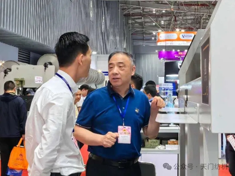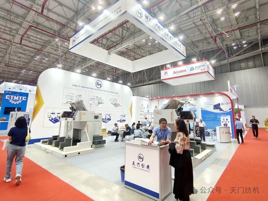 越南展會(huì)現(xiàn)場(chǎng)人流如織,其中天門紡機(jī)展區(qū)尤為矚目,開展期間分別迎來(lái)HANO SIMEX、VICOTEX、HONG LINH、NHA TRANG、THANG CONG、PHU BAI等50余家越南紡企的到訪,T1系列并條機(jī)憑借卓越性能表現(xiàn),引發(fā)現(xiàn)場(chǎng)觀眾駐足,多位老客戶對(duì)T1系列并條機(jī)的穩(wěn)定性與高效產(chǎn)能給予高度評(píng)價(jià)。