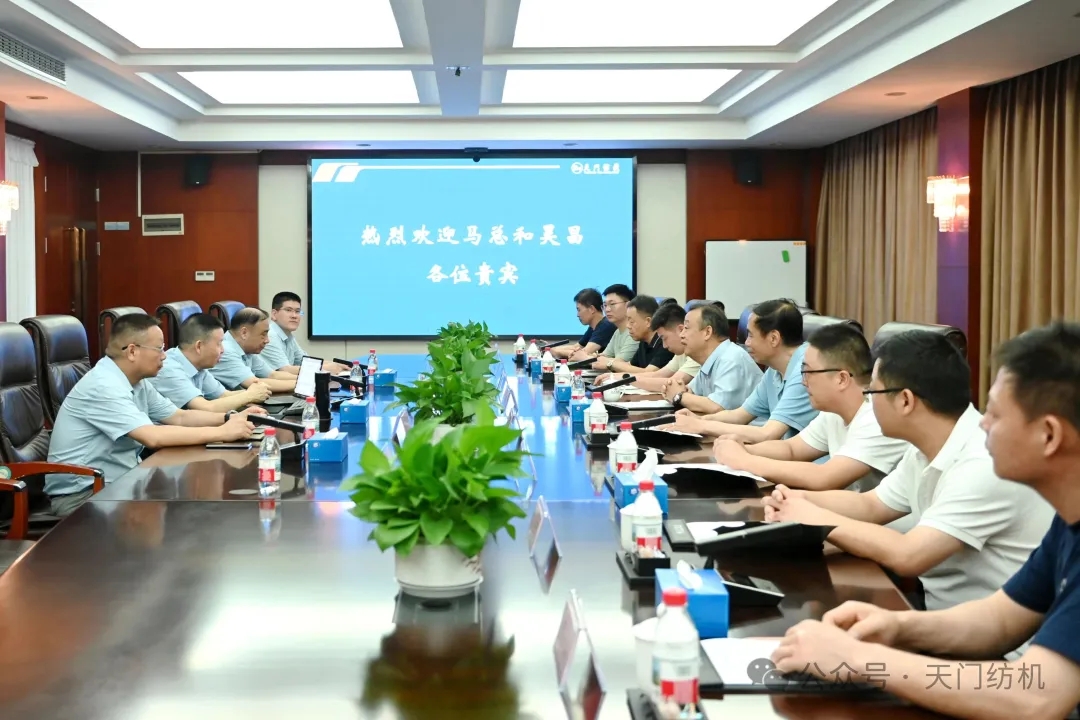 2025年6月30日上午,河南昊昌精梳機(jī)械股份有限公司董事長馬馳率高管及中層干部一行9人蒞臨天門紡機(jī),傳經(jīng)送寶。公司董事長沈方勇率隊(duì)熱情接待到訪客人,雙方圍繞企業(yè)發(fā)展進(jìn)行了深入交流。