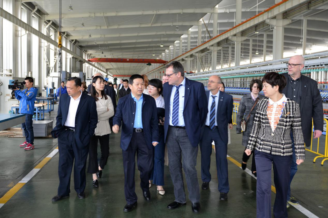 費澤爾市長(前排左3)一行在公司董事長沈方勇陪同下參觀天門紡機