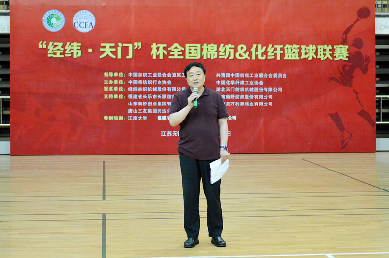 作為本次比賽的兩家冠名單位,中國紡織機(jī)械(集團(tuán))有限公司工會主席庫冠群代表經(jīng)緯紡織機(jī)械股份有限公司致辭,湖北天門紡織機(jī)械股份有限公司黨委書記魯?shù)挛脑谥罗o中表示:天門紡機(jī)應(yīng)邀參加本次聯(lián)賽,并有幸成為冠名單位之一,旨在以籃球的名義為促進(jìn)紡織文化的交流盡綿薄之力。