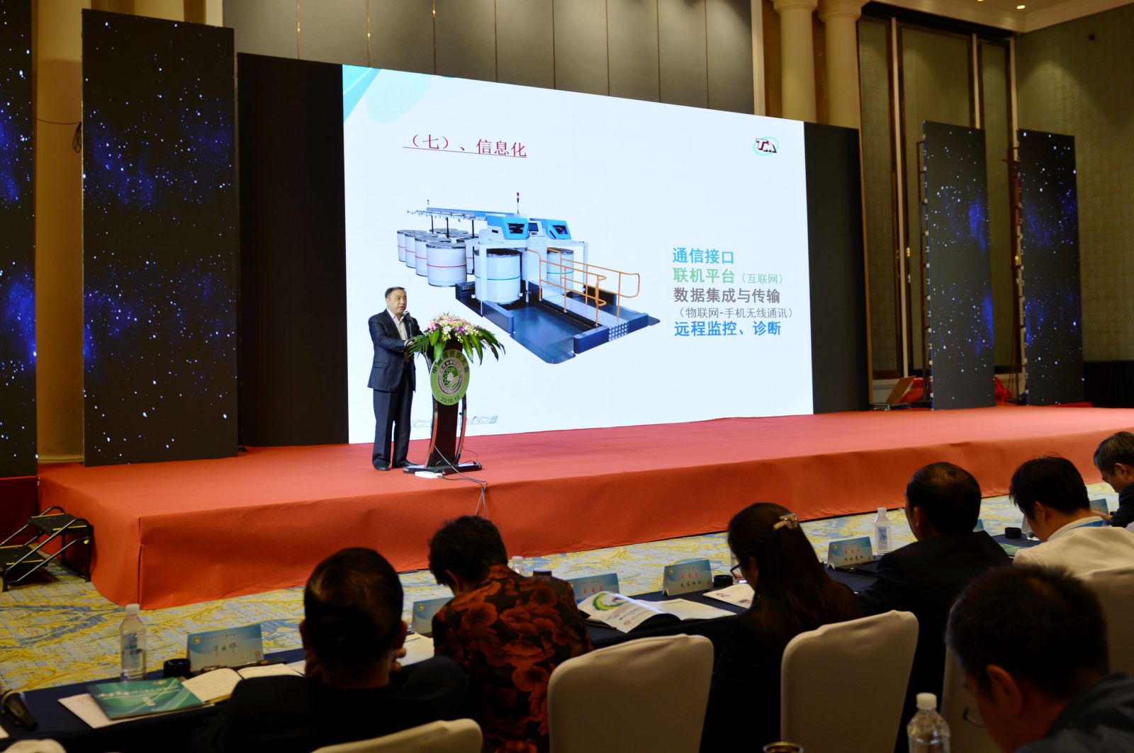 湖北天門紡織機械股份有限公司總經(jīng)理焦倫進在會上作了題為“棉紡的轉型升級與并條的未來”專題演講并介紹了天門紡機的設備,他強調(diào),設備的研發(fā)不是單純的減人增效,而是以人為本,人做不到的,容易出錯的環(huán)節(jié)應交給智能化設備。棉紡企業(yè)要求紡機制造企業(yè)的設備做到:高可靠性,連續(xù)生產(chǎn)、故障率低;高穩(wěn)定性,運行穩(wěn)定、品質(zhì)如一;高速高效,產(chǎn)量增加、節(jié)能降耗。通過先進設備、全流程自動化生產(chǎn)線,降低勞動強度,提高生產(chǎn)效益。