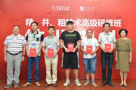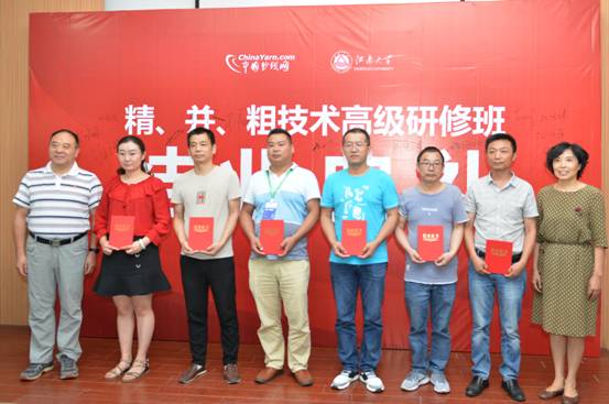 頒發(fā)證書的環(huán)節(jié)中,學員們從中國紗線網(wǎng)總編王果剛和江南大學謝春萍老師手中接過蓋著鋼印的結(jié)業(yè)證書,聆聽來自領(lǐng)導(dǎo)們的鼓勵,接受他人的肯定,回想這幾天努力時灑下的汗水,一切都是值得的。