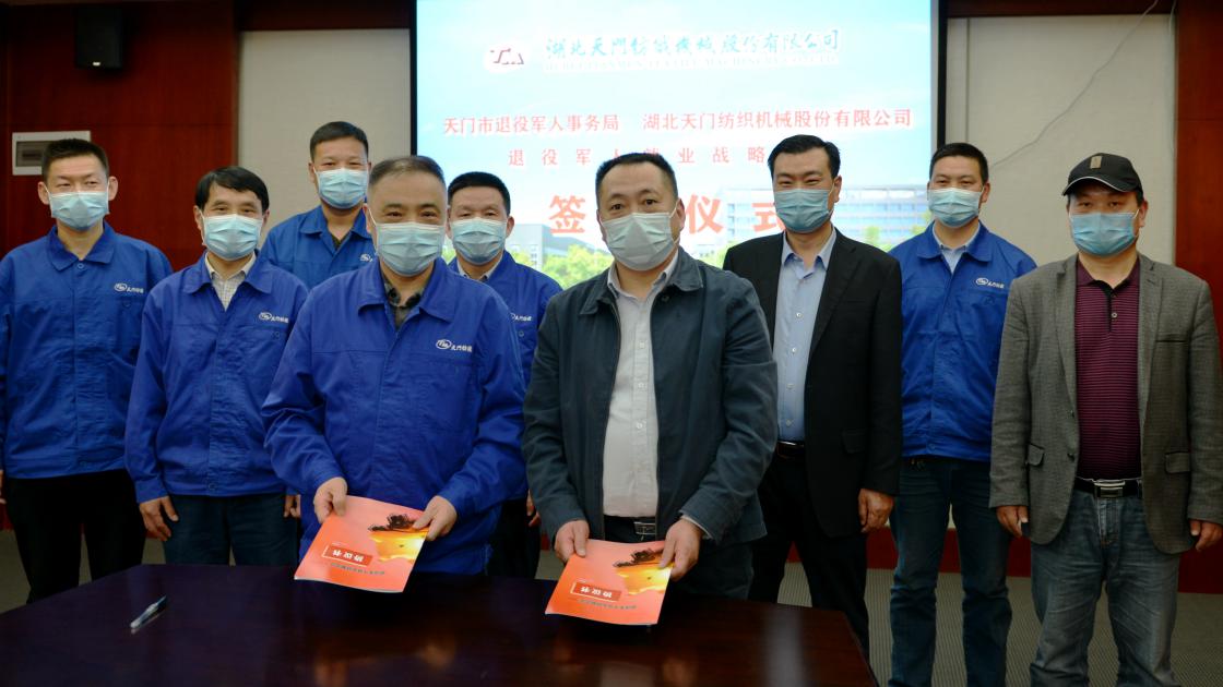 4月23日下午,天門市退役軍人事務局與天門紡機舉行退役軍人就業(yè)戰(zhàn)略合作簽約儀式,天門市退役軍人事務局副局長李文超、天門紡機總經(jīng)理焦倫進分別代表雙方簽約。