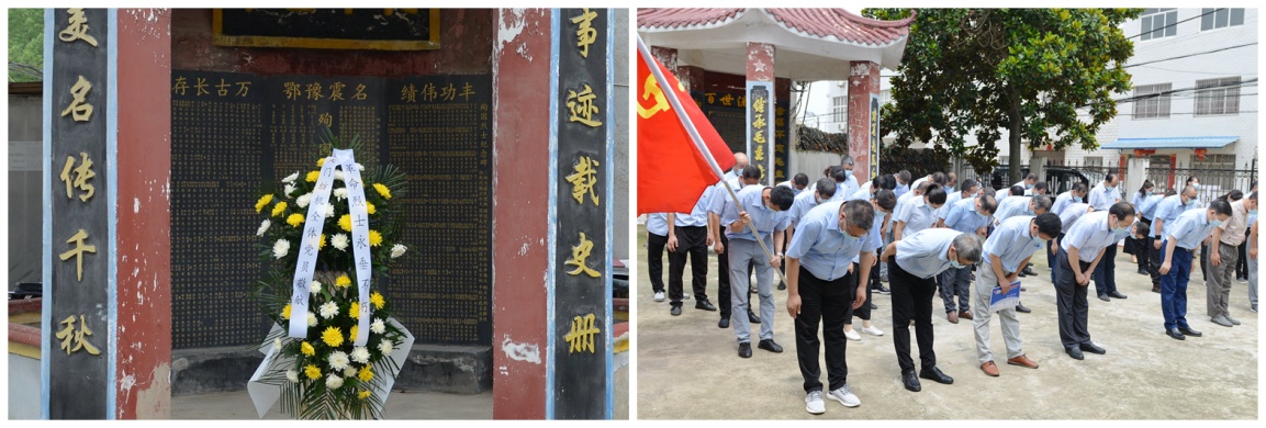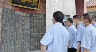 在烈士陵園,石家河鎮(zhèn)委副書記、鎮(zhèn)長謝紅宜講述了烈士陵園的歷史背景和抗日戰(zhàn)爭時期發(fā)生在石家河西河橋阻擊戰(zhàn)的革命歷史,黨員們認真聆聽并仔細觀看陳列柜里的革命文物,尤其是通過了解“名震豫鄂”石碑可歌可泣的英雄事跡,讓黨員們仿佛回到了那個炮火紛飛,革命先烈拋頭顱、灑熱血、視死如歸的年代。黨員們交流感悟,心生敬意,深刻緬懷長眠于此的356名新四軍指戰(zhàn)員。