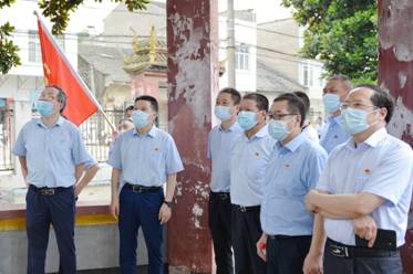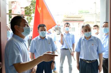 石家河鎮(zhèn)委副書記、鎮(zhèn)長謝紅宜(左1)講述革命歷史