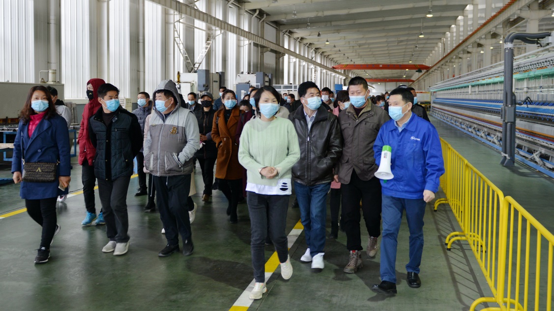 沈方勇董事長帶領(lǐng)求職人員參觀生產(chǎn)現(xiàn)場(chǎng)。疫情期間,天門紡機(jī)兌現(xiàn)不給黨和政府添麻煩、不給疫情防控造壓力、不給社會(huì)就業(yè)增負(fù)擔(dān)的承諾,想方設(shè)法招賢納士擴(kuò)大就業(yè)。