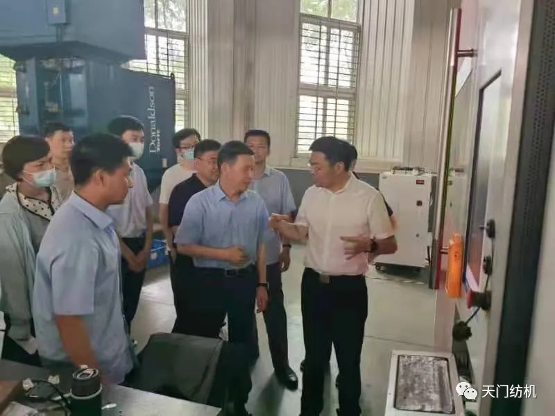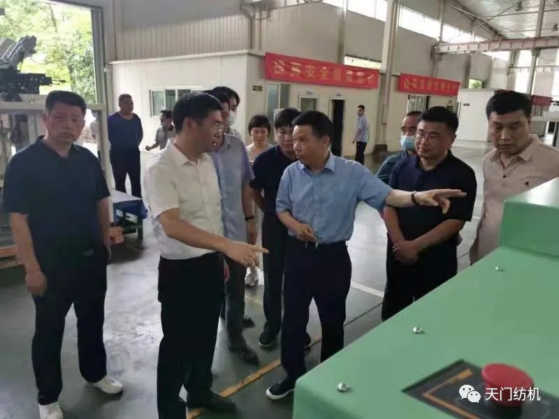 6月15日,酷暑炎熱,天門市委副書記、市長楊興銘,副市長高文博以及市經(jīng)信局、市科技局、市政務(wù)服務(wù)和大數(shù)據(jù)管理局、市經(jīng)濟(jì)開發(fā)區(qū)等相關(guān)部門負(fù)責(zé)人專程來到天門紡機(jī),現(xiàn)場調(diào)研技術(shù)裝備改造升級和安全生產(chǎn)工作。