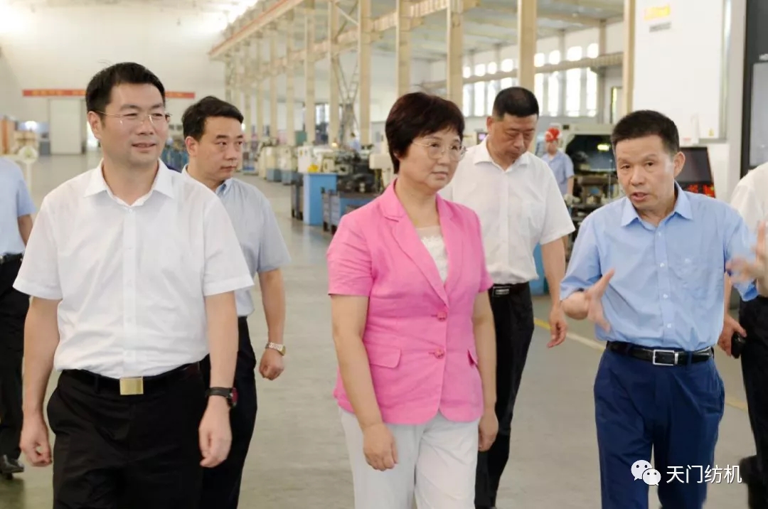 7月15日,湖北省人大常委會黨組書記、常務副主任王玲率代表工作委員會主任胡金國、研究室副主任詹金燦、辦公廳秘書處處長李春明、代工委辦公室副主任肖海麗等一行5人,在市委書記易先榮、市長楊興銘等領導的陪同下,專程調研天門紡機,并看望關心全國人大代表、公司董事長沈方勇。