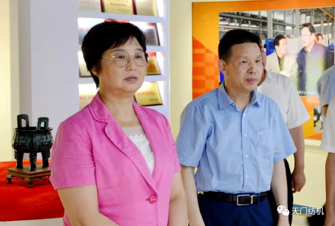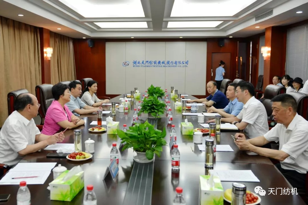 王主任一行參觀了天門紡機生產車間,詳細了解了紡織行業(yè)發(fā)展和公司主導產品研發(fā)、生產情況,并在公司召開了座談會。