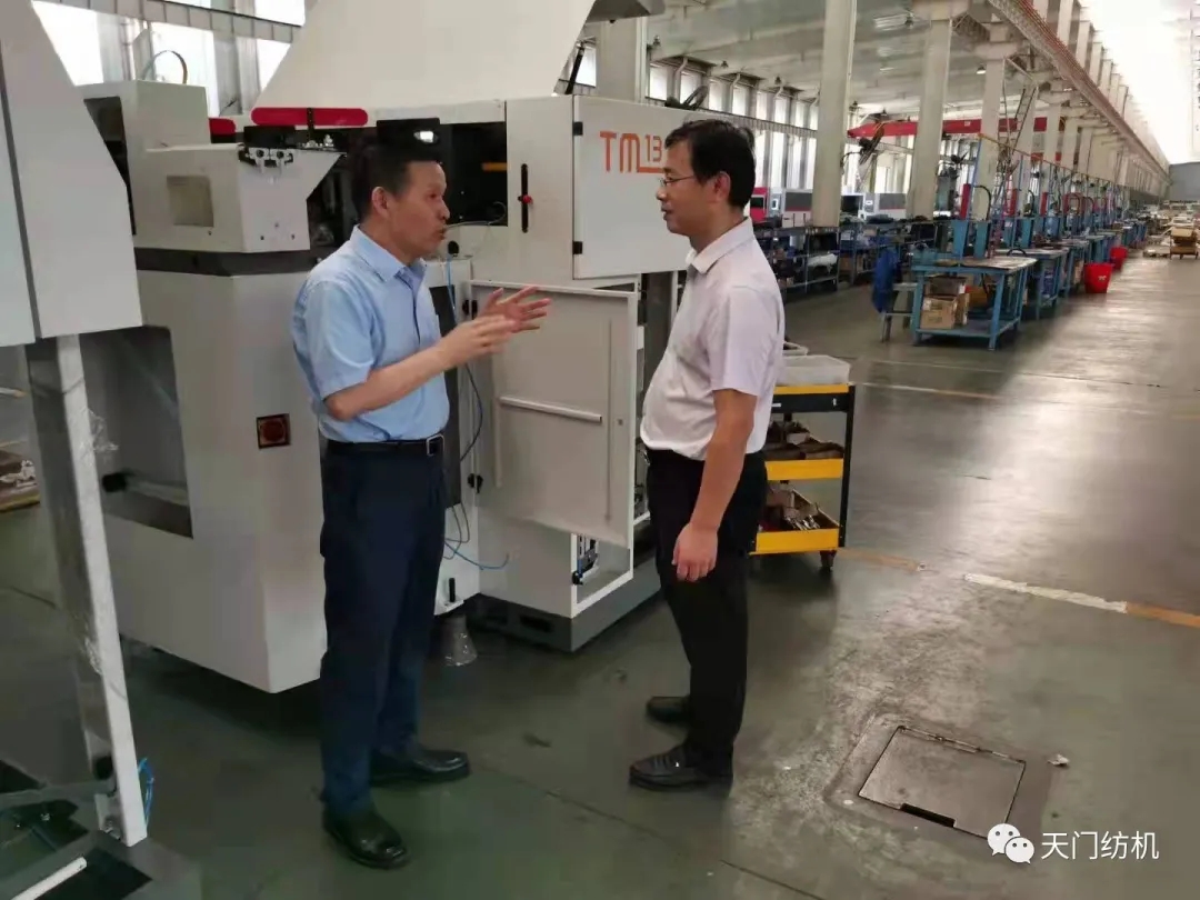 在公司董事長沈方勇的陪同下,夏局長一行到生產(chǎn)車間現(xiàn)場查看了生產(chǎn)制造情況,聽取了公司新開發(fā)的TM19、TM13產(chǎn)品介紹,了解了企業(yè)正在實(shí)施的“智慧工廠”項(xiàng)目。夏局長對天門紡機(jī)不斷加強(qiáng)新產(chǎn)品技術(shù)創(chuàng)新、推進(jìn)技術(shù)裝備改造升級給予了充分肯定。