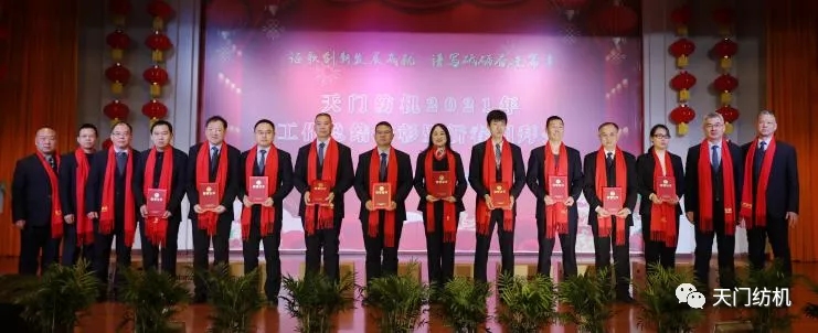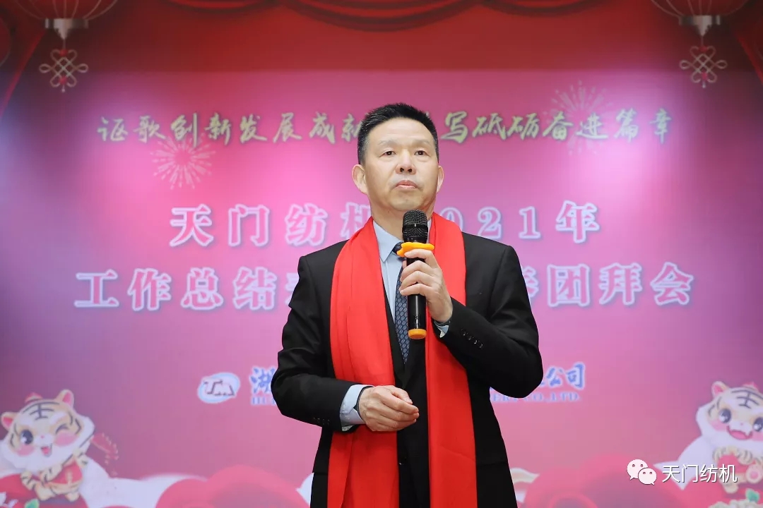 董事長沈方勇致熱情洋溢的新春賀詞,他表示,天門紡機走過了激情奮斗、碩果累累、超越自我的2021年,回首“退城進園”、轉型陣痛、市場洗禮、疫后重生的十年,公司“專精特新”的發(fā)展之路不曾改變,研、產(chǎn)、供、銷的“六高”閉環(huán)不曾動搖,“單項冠軍產(chǎn)品”的頭銜始終沒有丟失,技術創(chuàng)新度、品牌知名度、市場占有率、產(chǎn)品附加值同步提升、屢攀新高。感恩偉大祖國,感激業(yè)界同仁的支持信賴,感謝全體員工的團結拼搏、風雨同舟、辛勤付出!