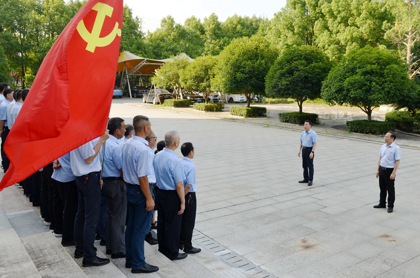 全國人大代表、天門紡機董事長沈方勇在黨員隊伍集結(jié)時激情致辭。他說,中國共產(chǎn)黨在嘉興南湖一艘紅船上誕生,從50多名黨員發(fā)展成為9000多萬名黨員的世界第一大執(zhí)政黨。百年來,中國共產(chǎn)黨書寫了一部堅守初心使命、應(yīng)對危局困境、經(jīng)受風(fēng)險考驗、戰(zhàn)勝困難挫折、開創(chuàng)民族復(fù)興偉業(yè)的奮斗史。作為一名共產(chǎn)黨員和天門紡機員工,我們要牢記黨的奮斗史,永葆青春活力,做先鋒模范,起戰(zhàn)斗堡壘作用,為企業(yè)發(fā)展、為建設(shè)富強民主和諧美麗社會主義現(xiàn)代化強國貢獻應(yīng)有的力量。