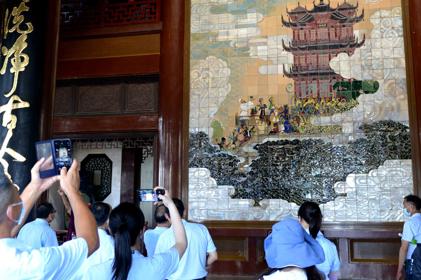 我們興致勃勃登臨黃鶴樓。黃鶴樓始建于三國時期,距今已有1700多年的歷史,是中國三大名樓之一?,F(xiàn)存的黃鶴樓建成于1985年,坐落在長江南岸武昌蛇山峰嶺之上。作為古今名樓,黃鶴樓承載了悠久燦爛的中華文化,唐代詩人崔顥的詩句“黃鶴一去不復(fù)返,白云千載空悠悠”,天人合一、境妙意遠,成為千古絕唱;李白詩句“故人西辭黃鶴樓,煙花三月下?lián)P州”,意趣盎然、灑脫不羈,彰顯詩仙神采;毛澤東詩句“煙雨莽蒼蒼,龜蛇鎖大江”,雄渾蒼茫、深沉豪放,抒發(fā)出一代偉人澎湃的革命激情…站在黃鶴樓頂極目遠眺,武漢三鎮(zhèn)盡收眼底,孕育了中華五千年文明的長江滾滾東去;建成于1956年的長江第一橋武漢長江大橋歷經(jīng)60多年的風(fēng)雨洗滌,巍然屹立;南來北往的貨輪客船穿江而過,汽笛聲聲。遠看鋼筋水泥澆筑的城市叢林,感受改革開放的滄桑巨變,作為中華兒女,油然而生一種自豪感和使命感。