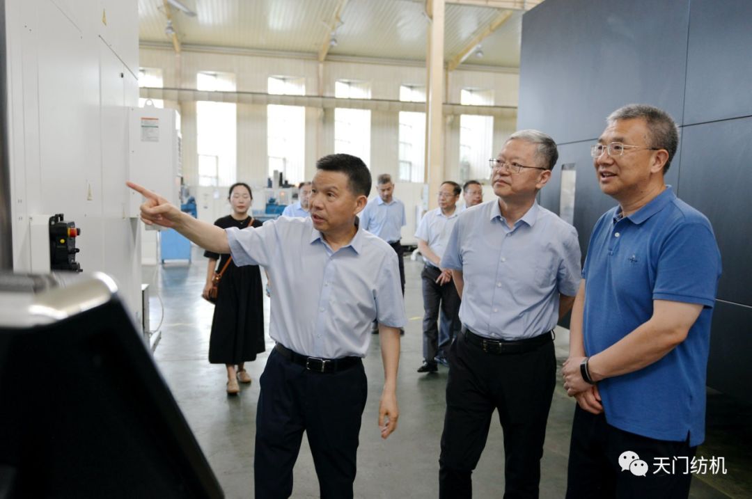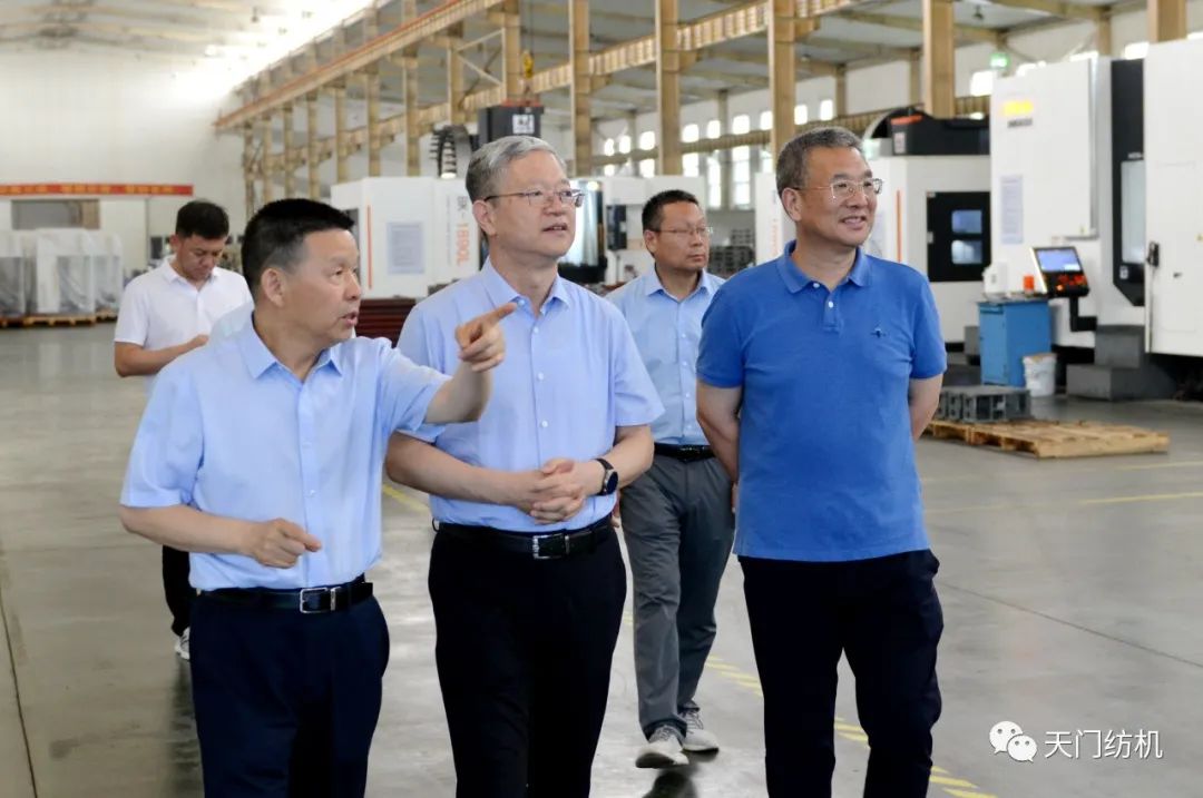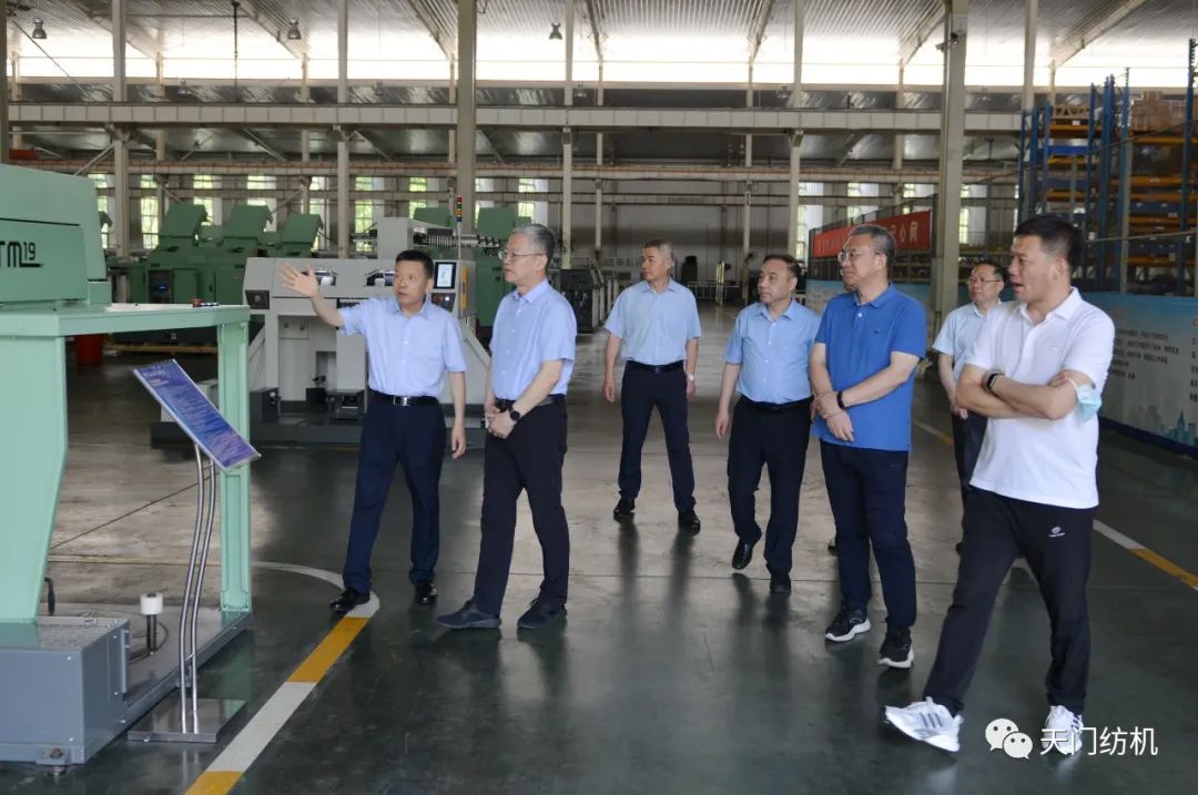 2023年6月27日下午,中國(guó)紡織工業(yè)聯(lián)合會(huì)秘書長(zhǎng)夏令敏,中國(guó)紡織工業(yè)聯(lián)合會(huì)流通分會(huì)副會(huì)長(zhǎng)徐建華、秘書長(zhǎng)王水元蒞臨天門紡機(jī)調(diào)研,湖北省經(jīng)信廳副廳長(zhǎng)周開斌、消費(fèi)品工業(yè)處副處長(zhǎng)鄧龍陪同調(diào)研。