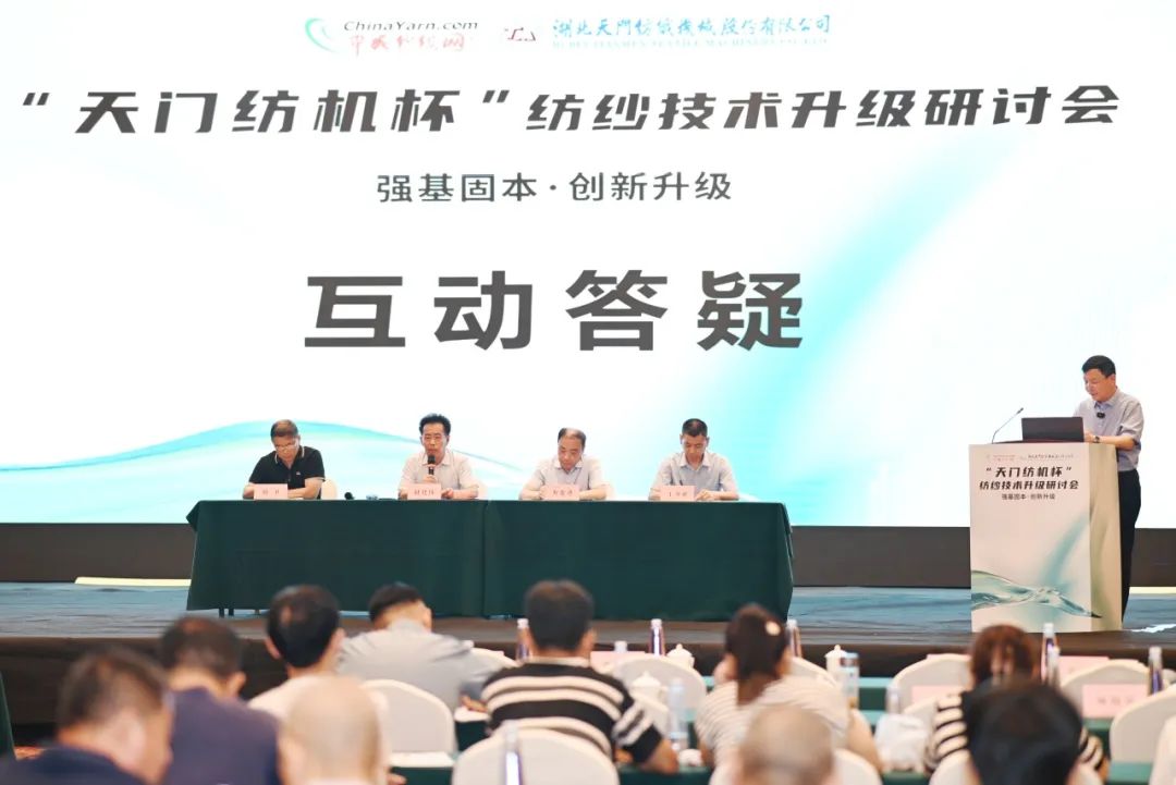 在專家互動答疑環(huán)節(jié)中,中國紗線網(wǎng)、天門紡機(jī)等單位的4位專家走向前臺,依次對紡織企業(yè)相關(guān)人員提出的設(shè)備操作、技術(shù)改造及企業(yè)未來發(fā)展等問題進(jìn)行了答疑解惑。