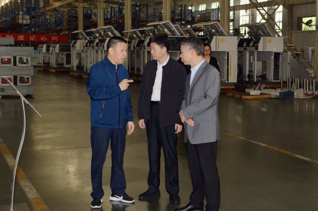 在車間現(xiàn)場(chǎng),沈方勇董事長(zhǎng)向單院長(zhǎng)一行介紹了天門紡機(jī)目前的生產(chǎn)經(jīng)營(yíng)狀況、智慧工廠項(xiàng)目建設(shè)進(jìn)展以及近年來(lái)科技開發(fā)取得的成績(jī);詳細(xì)介紹了正在調(diào)試并即將赴上海參展的多臺(tái)全新樣機(jī)的情況。