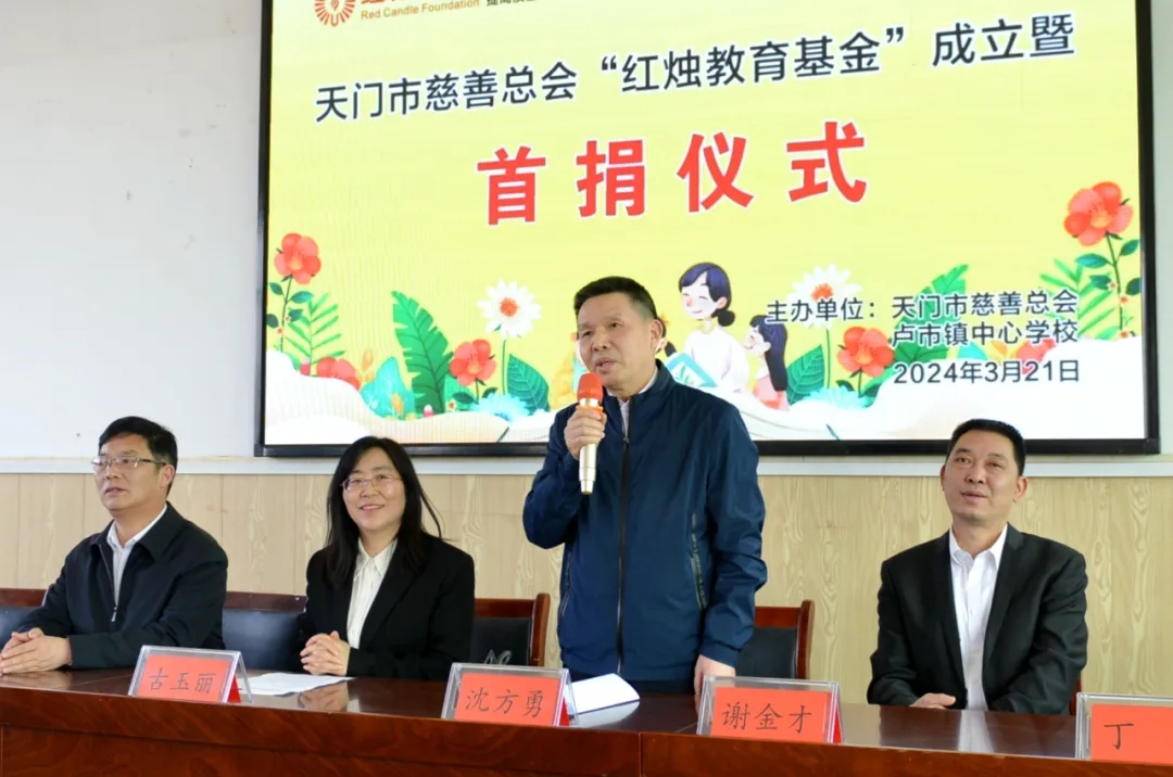 2024年3月21日,天門紡機董事長沈方勇出席在天門市盧市鎮(zhèn)盧家口中學舉行的天門慈善總會“紅燭教育基金”成立暨首捐儀式,同天門市慈善總會、教育局三方簽訂了《天門市慈善總會“紅燭教育基金”協(xié)議書》,并現(xiàn)場捐贈100萬元,用于獎勵盧市鎮(zhèn)優(yōu)秀教師和幫扶困難教師等公益活動,助力盧市鎮(zhèn)教育高質量發(fā)展。天門市人民政府副市長古玉麗,天門市民政局局長、市慈善總會會長謝金才,天門市教育局局長劉華陽,天門市慈善總會秘書長李貴清,盧市鎮(zhèn)宣傳統(tǒng)戰(zhàn)委員劉恒超以及盧市鎮(zhèn)部分教師代表等參加首捐儀式。盧市鎮(zhèn)黨委書記趙君波主持儀式。