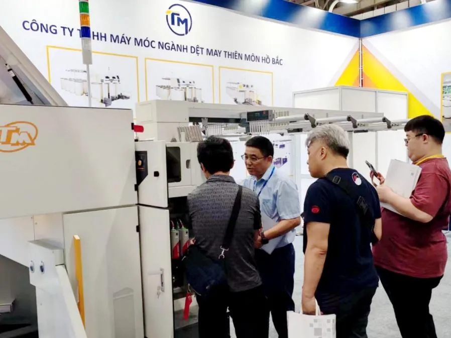 展會(huì)期間,越南PHU BAI、BROCSTEX、TPP TEXTILE、PHONG PHU、VICOTEX等多家紡織企業(yè)蒞臨天門紡機(jī)展位進(jìn)行參觀交流,對(duì)天門并條機(jī)贊許有嘉,評(píng)價(jià)其出條成形好,效率高,且性能穩(wěn)定,節(jié)能降耗。前期的一些用戶也來(lái)到現(xiàn)場(chǎng)考察,商討繼續(xù)合作的意向。