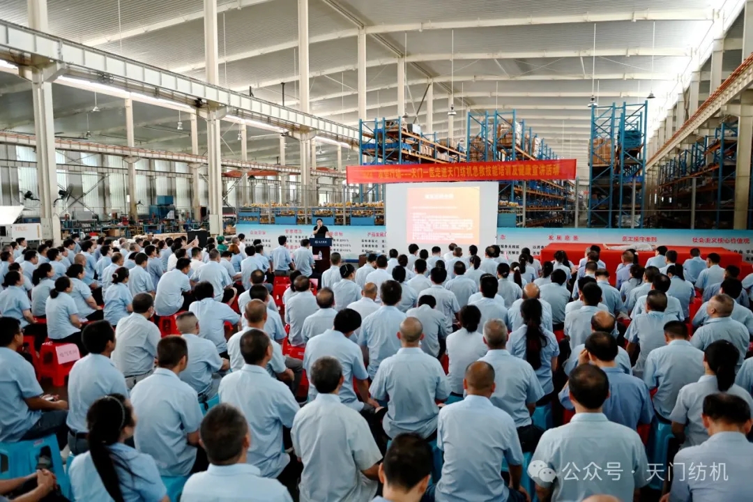 室外赤日炎炎,酷暑難當(dāng);室內(nèi)座無(wú)虛席,氣氛熱烈。2024年7月17日下午,天門紡機(jī)在生產(chǎn)現(xiàn)場(chǎng)組織了一場(chǎng)別開生面的健康知識(shí)及急救技能培訓(xùn)活動(dòng),天門市第一人民醫(yī)院的多位醫(yī)療專家應(yīng)邀來(lái)公司進(jìn)行健康知識(shí)講座和急救實(shí)操演示。