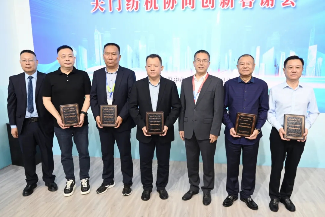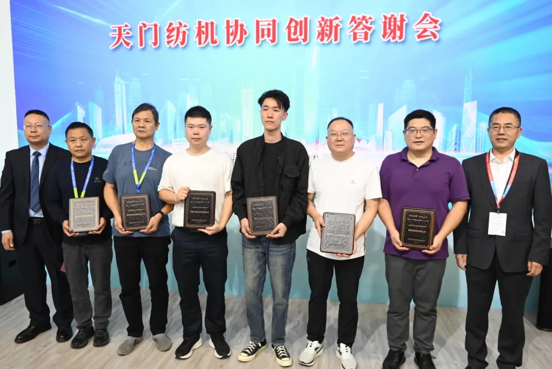 天門紡機(jī)總經(jīng)理焦倫進(jìn)宣布在協(xié)同創(chuàng)新中作出突出貢獻(xiàn)的單位和個人名單,中國紡織工業(yè)聯(lián)合會徐迎新副會長為倪俊龍董事長、陳冰教授、曹中華博士、陸惠文先生頒發(fā)紀(jì)念章,為臺達(dá)、匯川、南通五洲等3家企業(yè)代表頒發(fā)紀(jì)念牌。