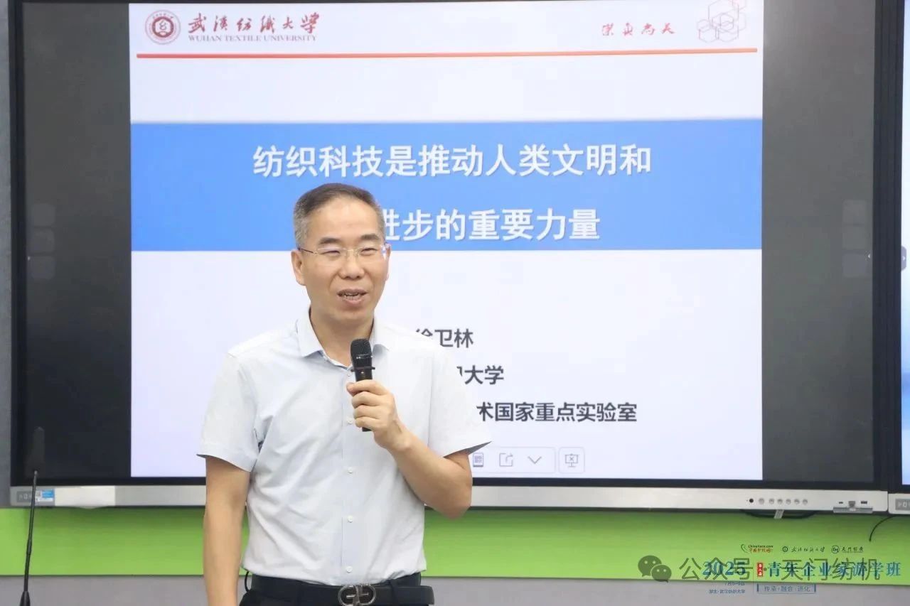 第一課由中國工程院院士、武漢紡織大學(xué)黨委書記徐衛(wèi)林主講,主題為《紡織科技是推動人類文明和社會進步的力量》。他從紡織起源開始娓娓道來,貫通文化、品牌與時尚,深入剖析紡織科技的發(fā)展脈絡(luò)與未來趨勢,為學(xué)員們帶來前瞻視野。