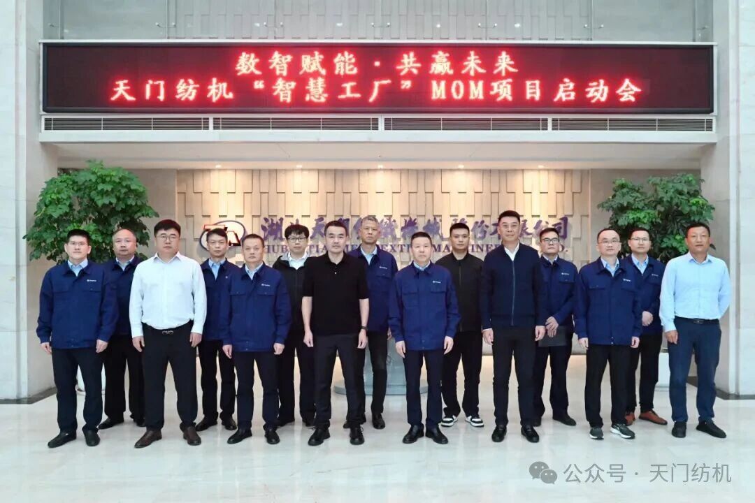 2025年10月15日下午,天門紡機在科技樓五樓會議室召開MOM系統(tǒng)項目啟動會。公司董事長沈方勇、項目合作方廣東盤古信息科技股份有限公司CTO劉鵬、副總經(jīng)理游畢濤及項目相關(guān)負(fù)責(zé)人出席會議,公司副總經(jīng)理胡進(jìn)紅、鄧俊杰,有關(guān)部門、車間負(fù)責(zé)人和工作人員參加了會議。