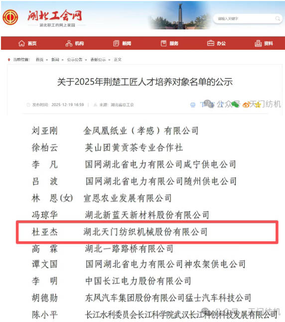 近日,天門紡機總工程師杜亞杰成功入選荊楚工匠人才培養(yǎng)對象,這份榮譽既是對他二十余年深耕紡織裝備研發(fā)領域的認可,更是對他以匠心守初心、以創(chuàng)新破難題的生動詮釋。